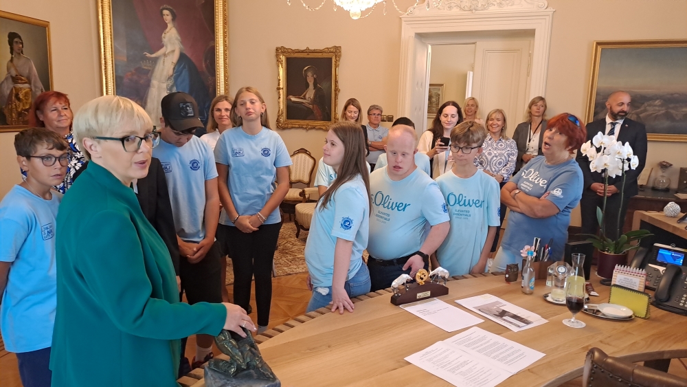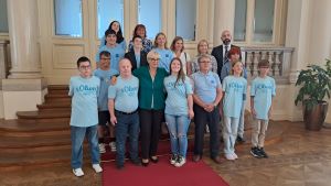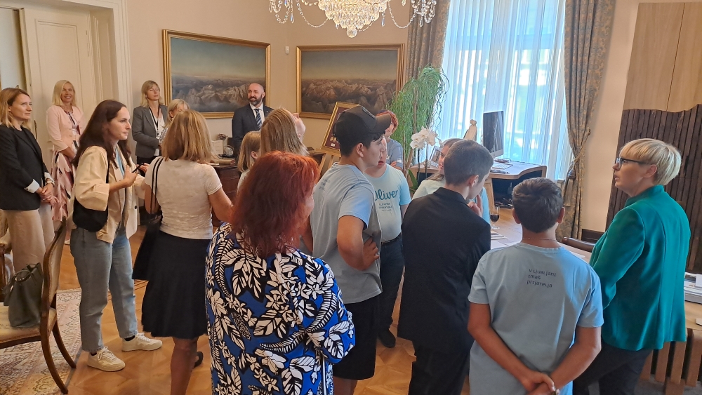 Otroci iz Društva Downov sindrom Slovenija, O.Š. Duplek in iz Doma Malči Belič iz Ljubljane, ki se te dni odpravljajo na jadranja otrok s posebnimi potrebami, so danes, v imenu otrok iz vse Slovenije, ki se bodo udeležili največjega evropskega socialno humanitarnega projekta Mirno morje, obiskali predsednico Republike, Natašo Pirc Musar.